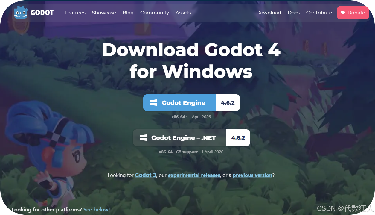 访问 https://godotengine.org/download 页面下载Godot引擎。