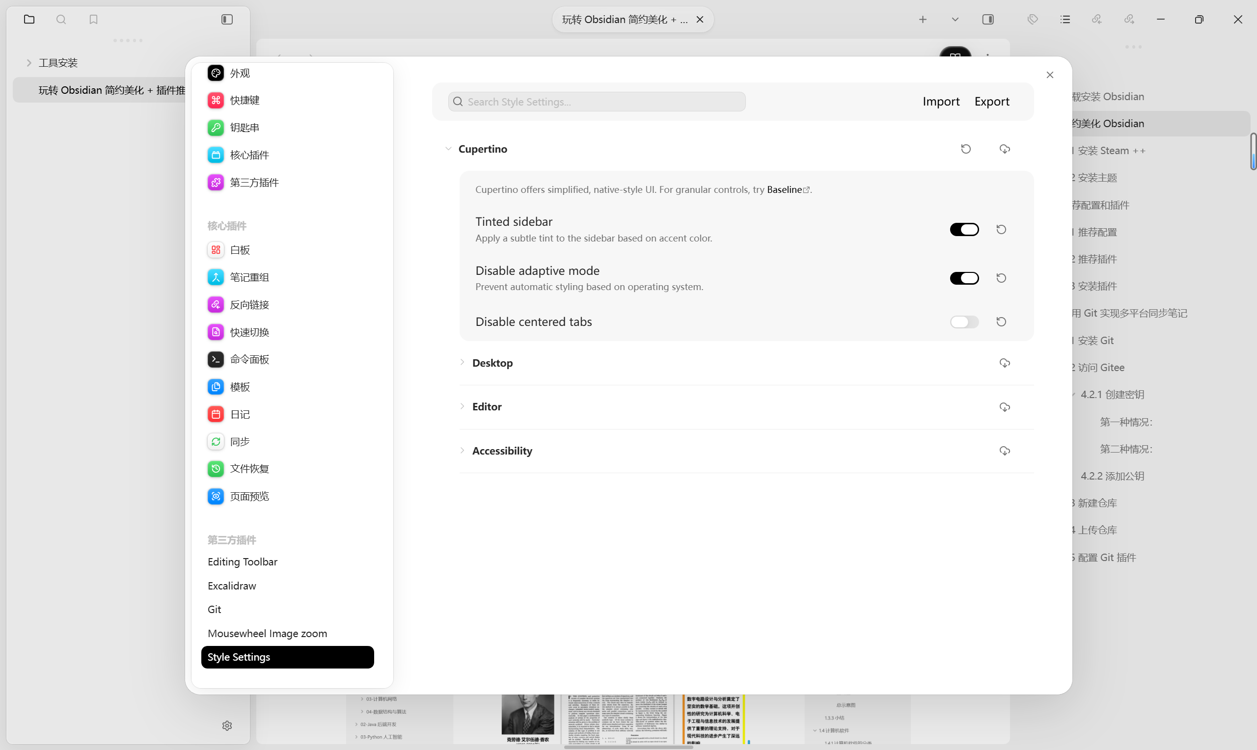 虽然开箱即用,但 Cupertino 并没有牺牲灵活性。通过配合 Style Settings 插件,你可以对主题进行深度的微调: