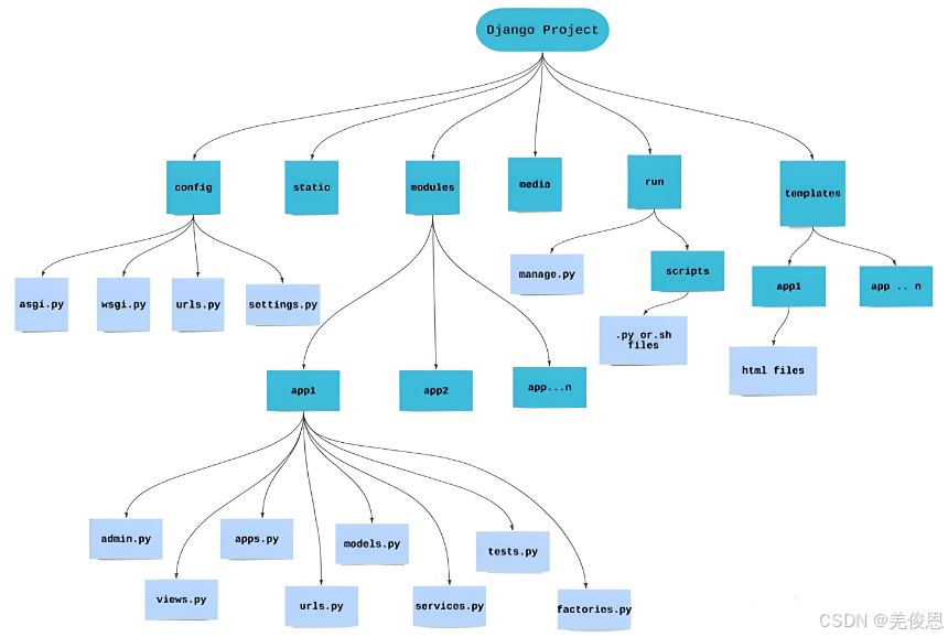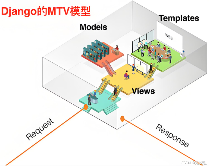 Django有严格的"约定优于配置"理念,基于Python编程语言驱动,遵循一种称为MTV(模型-模板-视图)模式的架构模式,Django 将 MVC 中的视图进一步分解为 Django 视图和 Django 模板两个部分,MVC 中的控制器由 Django 框架的 URLconf 来实现;这种模式运行我们方便、快捷地创建高品质、易维护、数据库驱动的应用程序。当你创建一个项目时,它会自动生成固定的文件夹结构(models, views, templates 等);项目代码风格统一,约定俗成,意味着如果你想打破常规,会觉得很受限。Django 框架的核心组件有: