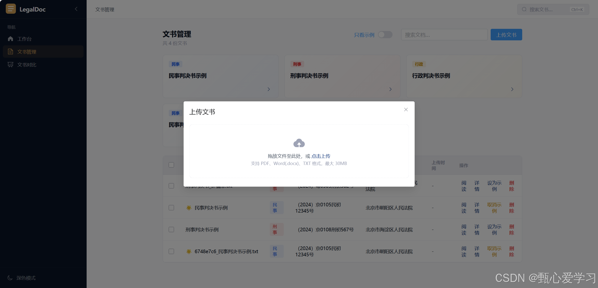 4.文书管理页面的上传文档功能