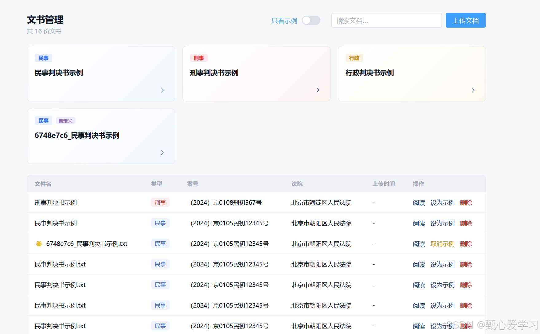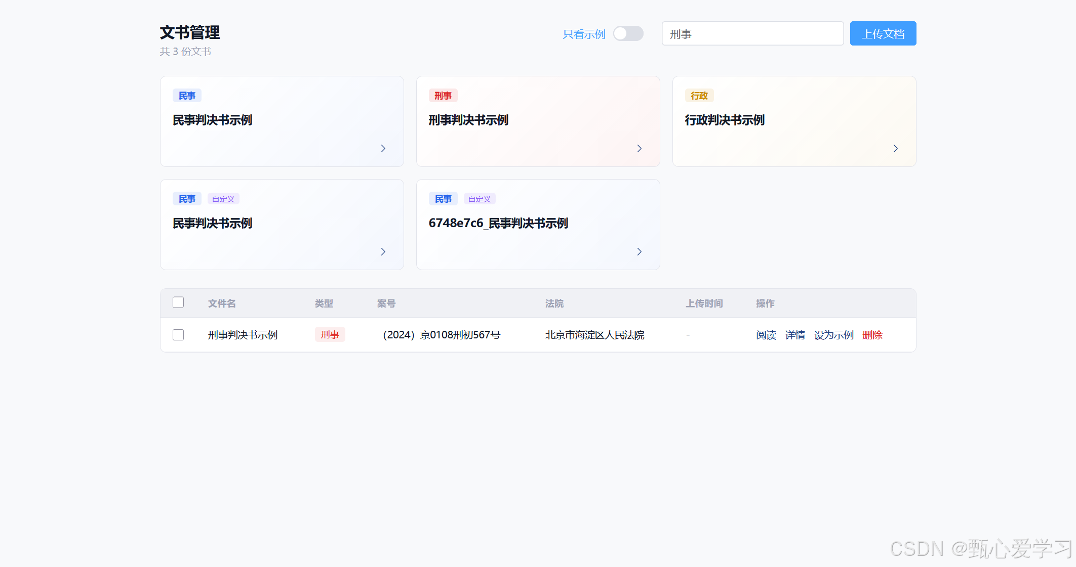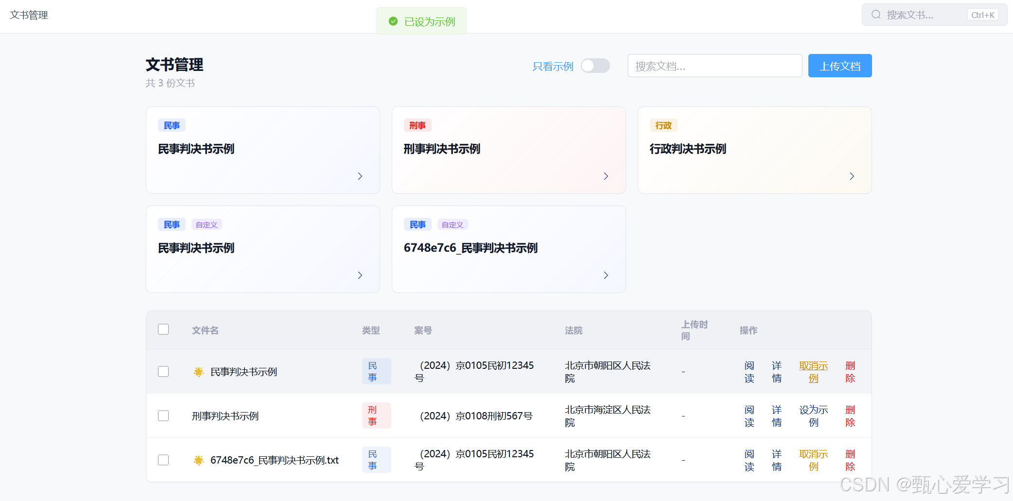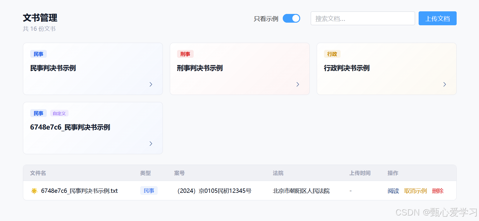 之前文书管理与示例展示各自分裂,这里在文书管理中加入示例的卡片展示