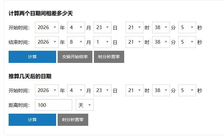 类似于链接中的日期计算机,我们的小项目中也有其功能,我们可以通过天数来找到目标日期,可以计算两个不同日期的相差天数,也可以进行大小比较等。