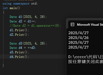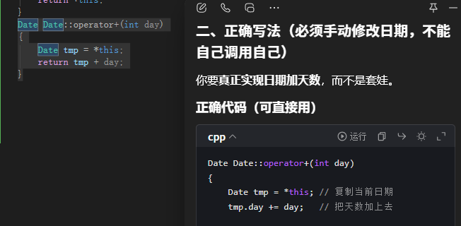 Date Date::operator++(int) { Date tmp = *this; *this += 1; return tmp; }这里详细介绍引用返回和传值返回的区别。