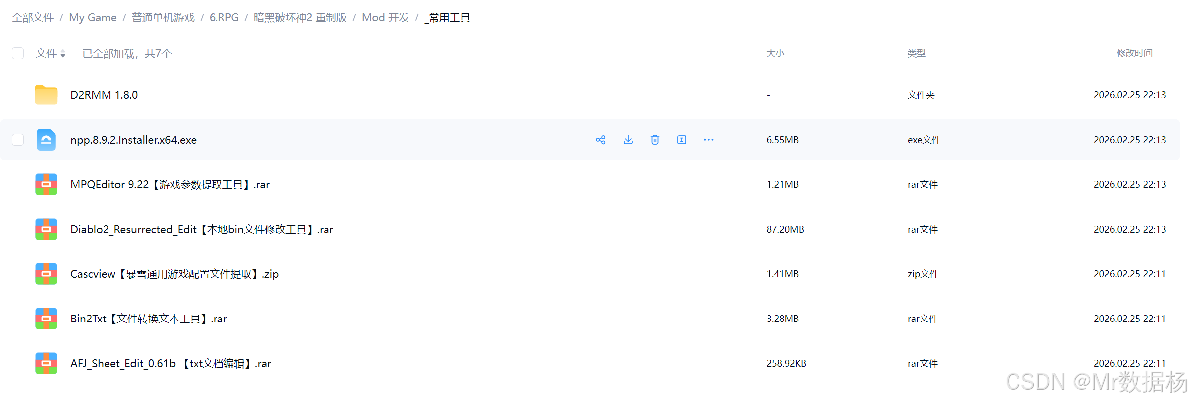 《Diablo II: Resurrected》的 Mod 开发,并不是简单改几行数值,而是一套完整的数据重构过程。游戏内部的物品、技能、怪物、掉落,本质上全部是结构化表数据,通过 Casc 存储体系封装,再由加载链路按规则读取。CascView 负责资源提取,Bin2Txt 解决格式互转,MPQEditor 完成封装部署,D2RMM 处理补丁合并与冲突控制,文本编辑工具承担字段级修改。整条链路清晰地对应了现代软件工程中的源码获取、数据改写、编译构建与发布管理。