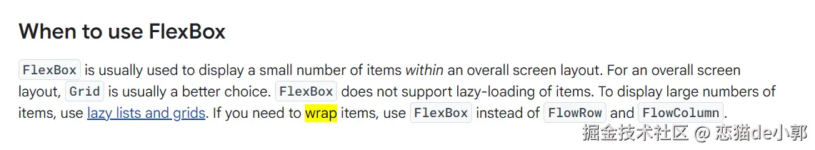 甚至按照官方的说法,如果你需要 wrap,那就用 FlexBox,而不是 FlowRow / FlowColumn :