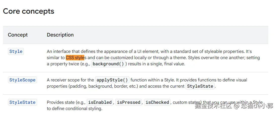 过去 Compose 其实一直缺少这一层,所以很多事情被迫塞进 modifier 活着参数里,现在 Styles 让这层抽象真正出现了,官方甚至直接说它"类似 CSS styles" :