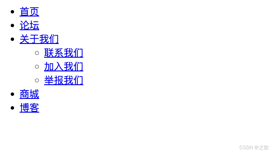 语义: 表示一组相关但无顺序要求的项目,浏览器通常使用圆点(bullets)作为标记。