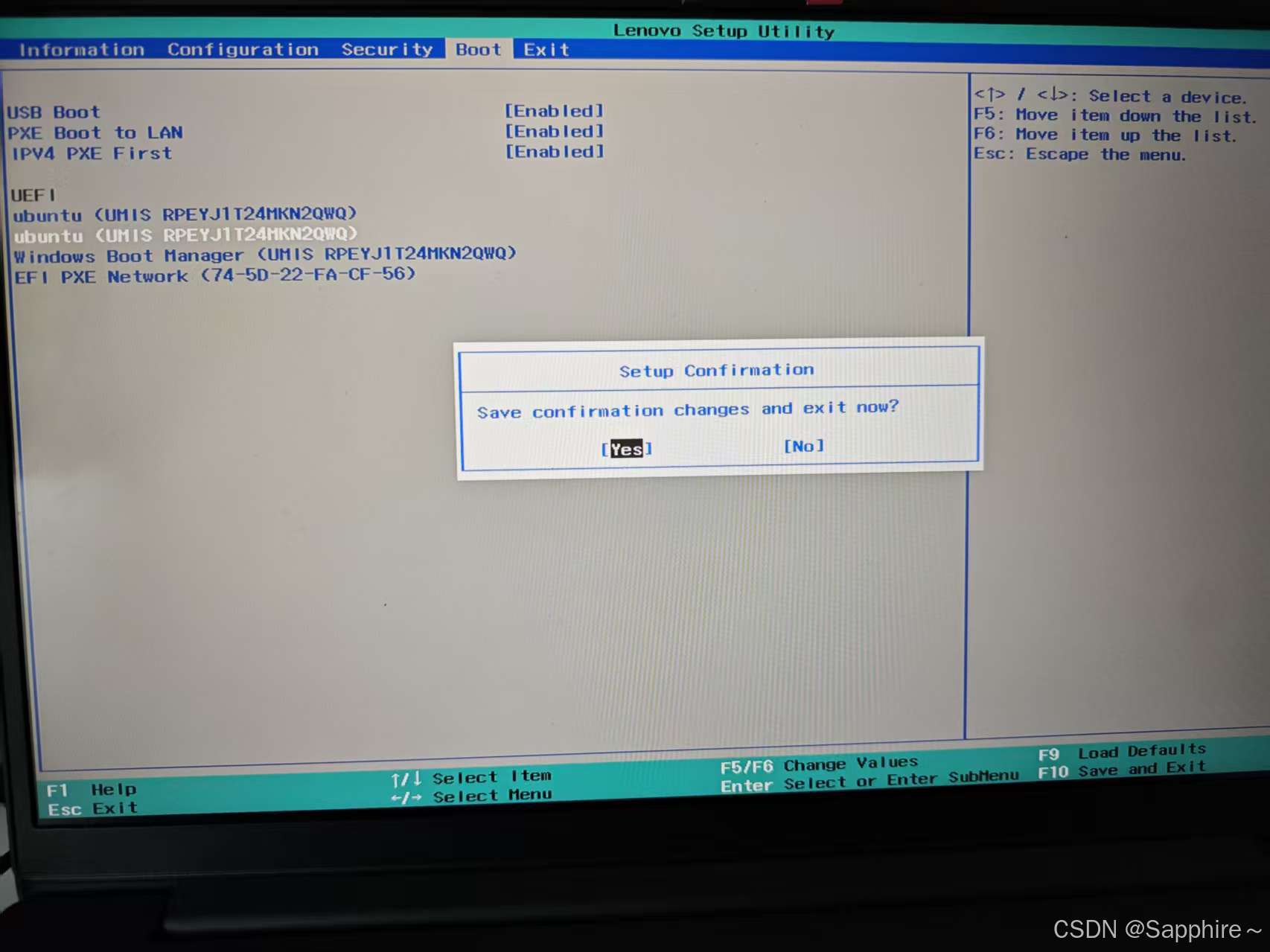 进入Boot菜单,调整ubuntu到前面后按F10保存: