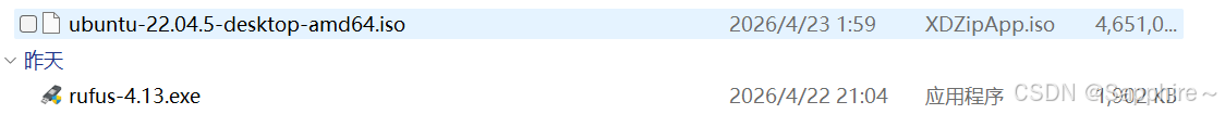 准备软件rufus.exe和 ubuntu 的镜像文件.iso.