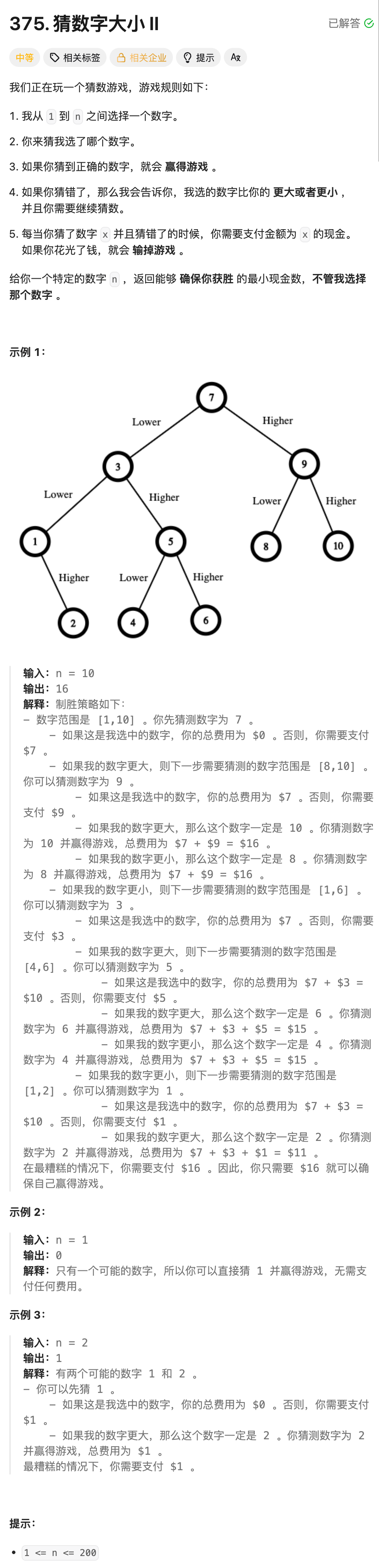 //返回:在该区间内猜数字,确保获胜的最小现金数