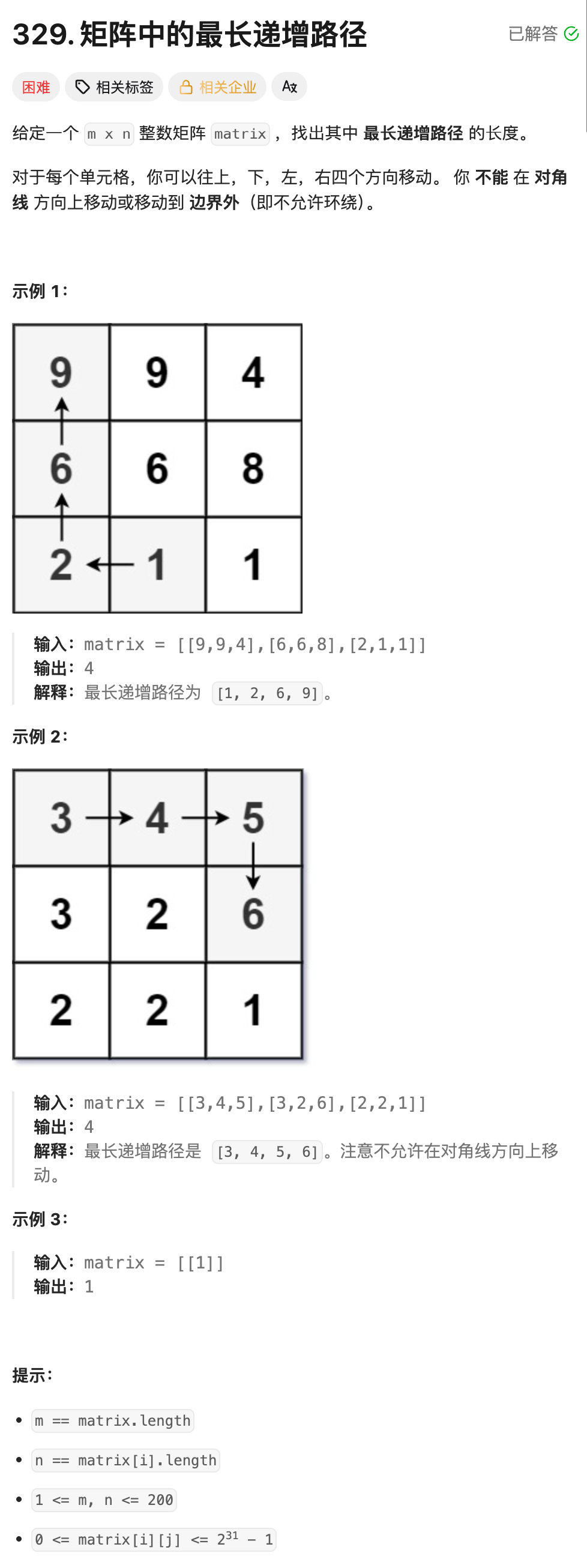 int longestIncreasingPath(vector<vector<int>>& matrix)