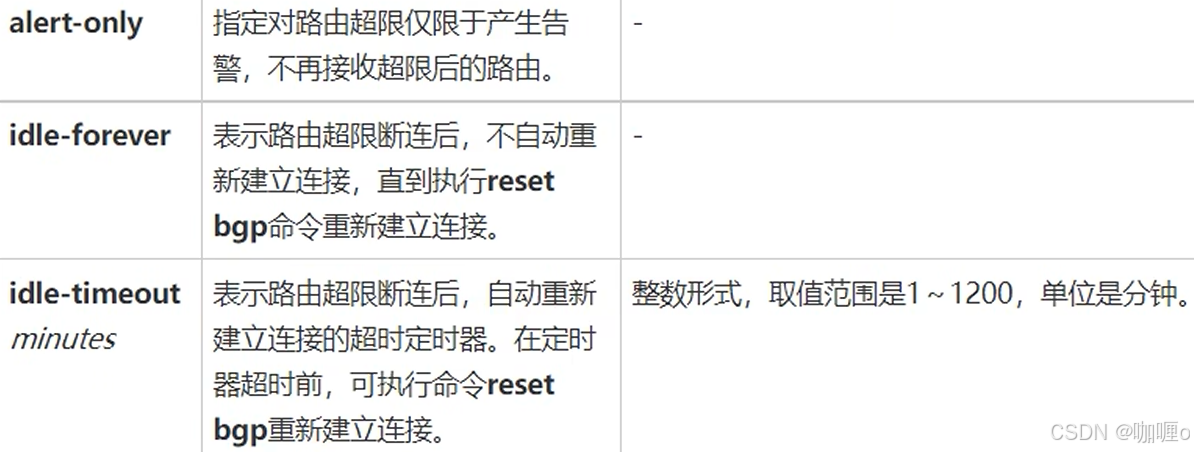 Huawei\]bgp 100 \[Huawei-bgp\]peer 10.0.0.2 as-number 200 2、通过loopBack建立EBGP邻居一定要注意Loop Back地址可以访问。还要声明用的loopback本地接口, 还要修改EBGP的TTL值至少是2(EBGP的TTL值默认为1)。 \[Huawei\]bgp 100 \[Huawei-bgp\]peer 2.2.2.2 as-number 200 \[Huawei-bgp\]peer 2.2.2.2 connect-interface LoopBack 0 \[Huawei-bgp\]peer 2.2.2.2 ebgp-max-hop 2 3、通过物理地址建立IBGP邻居很简单。本身物理地址可达。 \[Huawei\]bgp 100 \[Huawei-bgp\]peer 10.0.0.2 as-number 100 4、通过loopBack建立IBGP邻居一定要注意Loop Back地址可以访问。还要声明用的loopback本地接口。 Huawei\]bgp 100 \[Huawei-bgp\]peer 2.2.2.2 as-number 100 \[Huawei-bgp\]peer 2.2.2.2 connect-interface LoopBack 0 \[Huawei-bgp\]peer 2.2.2.2 next-hop-local //修改下一跳 5、BGP的发布:network和import-route ,区别是network只能一条一条发布,import-route可以多条发布。 \[Huawei\]bgp 100 \[Huawei-bgp\]network 192.168.1.1 32 ## 路由黑洞 BGP 支持跨跳建立邻居关系,虽然在控制平面上形成了邻居关系,但有可能中间跨过的设备没有配置 BGP 协议,导致在传输层面无法实现传输,此成为路由黑洞 ## BGP 的路径属性类型 公认必遵:公认:所有路由器都能识别的属性;必遵:所有路由器传递路由的时候必须携带 公认任意:任意:传递BGP路由的时候可以携带也可以不携带 可选过渡:传递BGP路由的时候如果携带了某个属性,传递给另外的路由器,该路由器不能识别该属性,它也可以把这条BGP路由传递给下一个路由器 可选非过渡:传递BGP路由的时候如果携带了某个属性,传递给另外的路由器,该路由器不能识别该属性,它不能把这条BGP路由传递给下一个路由器 **Local-prefe** **:(本地优先级)** 公认任意属性 只在一个 AS 内部进行传递,不会传递给 EBGP 邻居 用于 BGP 路由的路径选择(默认 100,越大越优先) 应用在 AS 内存在多个出口的时候选择一个出口访问外部网络 EBGP 路由不携带本地优先级属性,对于不携带本地优先级属性的 BGP 路由,设备将会认为这个 BGP 路由的本地优先级为默认本地优先级(默认本地优先级为 100) 修改方式: 1. 针对接受或者发送给 BGP 邻居的路由进行修改(route-policy) EBGP 邻居之间 out 方向不可以修改 EBGP 邻居之间 in 方向可以修改 IBGP 邻居之间可以在 in/out 方向进行修改 2. 改默认的本地优先级 \[AR2-bgp\] default local-preference //修改默认的本地优先级 关键点:在只会对没有本地优先级属性的路由生效 哪些 BGP 路由没有本地优先级: 自身产生的:network 和 import-route 指定变成的 BGP 路由没有本地优先级 邻居传递的:EBGP 邻居传递的路由默认没有本地优先级 3. 优选本都生成的路由: 手动聚合 \> 自动聚合 \> network \> import-route \> 邻居传递的 当下一跳等于 127.0.0.1 或者 0.0.0.0 的时候,路由即为本地产生的 4. AS-path 公认必遵属性 用于 AS-path 之间的防环属性 用于 BGP 路由的路径选择 路径选择:当存在去往同一个目的地的多条 BGP 路由时,比较两条路由的 AS-path 属性,越短越优先 AS-path 修改方式:AS-path 在任何 BGP 邻居之间的 in/out 方向都可以进行修改 Apply as-path 100 100 additive //在原有的 as-path 列表中添加新的 as 号 Apply as-path 100 100 overwrite //使用新的 as-path 覆盖原有的 as-path Apply as-path none overwrite //清除原有的 as-path 5. Next-Hop:下一跳属性原则 (1)来源于EBGP的路由通告给EBGP邻居会自动更新源地址。 (2)来源于EBGP的路由通告给IBGP邻居不会自动更新源地址,导致路由不可用,需要手动更新源地址。\[Huawei-bgp\]peer 10.0.0.4 next-hop-local (3)来源于EBGP的路由和对等体之间是共享型的网络,则路由的下一跳保持不变。 6. Origin(起源属性) 公认必遵属性 描述了这条路由是如何成为 BGP 路由的 用于 BGP 路径选择 取值:i:表明该路由是通过 network 的方式变成的 BGP 路由 ?:表明该路由是通过 import-route 方式变成 BGP 路由 e:表明从 EGP 协议学习到的路由 选路规则:I \> e \> ? 7. MED 也叫 BGP 的 cost 值,或者叫做 BGP 的度量值,主要影响邻居 AS 的选路 可选非过渡属性(不会传递给邻居) 用于 BGP 路由的路径选择,越小越优先 如果报文中不携带 MED 值,默认 MED 值为 0 华为 MED 通告原则: 自身始发的路由,MED 会通告为 IBGP 和 EBGP 邻居 从 IBGP 邻居接受的路由,传递给 EBGP 邻居的时候,不携带 MED 从 EBGP 邻居接受的路由,传递给 IBGP 邻居的时候,携带 MED 从 EBGP 邻居接受的路由,传递给 EBGP 邻居的时候,不携带 MED MED 的修改方式: 在所有的 BGP 邻居之间 in/out 方向均可修改 MED 选路方式: 默认情况下,只有当了两条 BGP 路由 as-path 列表中,最左边的 AS 号相同的时候,才会进行 MED 的比较 MED:只能在相邻 AS 之间传递,跨越 AS 无法传递,直接和静态的 MED 值为 0 8. Preferred-Value(协议首选值):华为设备的特有属性,该属性仅在本地有效。该值越大,则路由越优先。Preferred-Value只能在路由器本地配置,而且只影响本设备的路由优选。该属性不会传递给任何BGP对等体。 ## Local Preference和MED属性选路的区别: (1)Local Preference值越大越优先,MED越小越优先 (2)Local Preference用于AS内部(IBGP),MED用于AS之间(EBGP) (3)Local Preference用于AS内选择出口,MED用于AS之间选择入口 ## BGP 路由的优选规则顺序 1、优选Preferred-Value属性值最大的路由。 2、优选Local_Preference属性值最大的路由。 3、本地始发的BGP路由优于从其他对等体学习到的路由,本地始发的路由优先级:优选手动聚合\>自动聚合\>network\>import\>从对等体学到的。 4、优选AS_Path属性值最短的