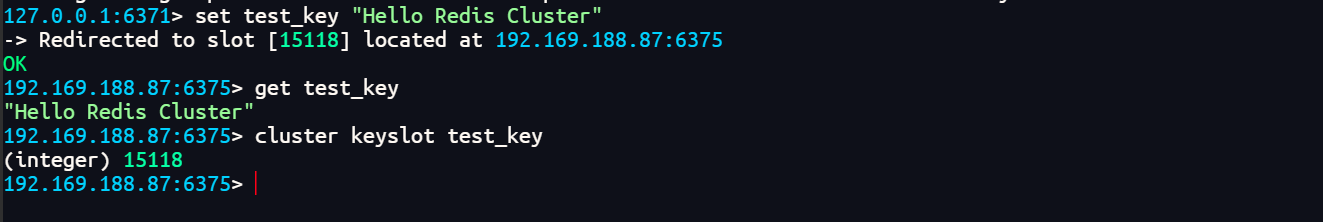 > set test_key "Hello Redis Cluster"