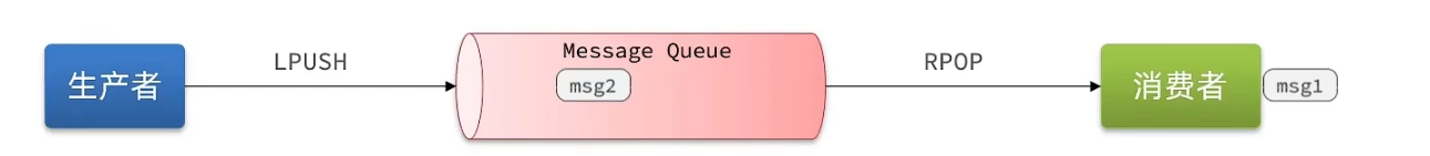 因为队列需要出口和入口不在同一边,所以可以用list的LPUSH 和 BRPOP来从左端口进右端口出,来模拟消息队列的效果