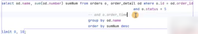 order by sumNum desc limit 0,10