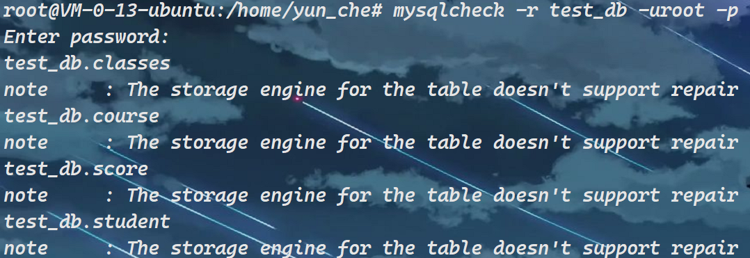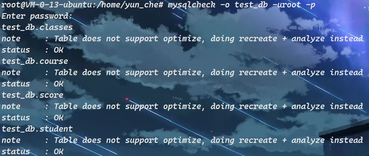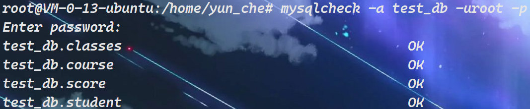 Tips:如果db_name没有指出表名,或者使用--databases 或 --all-databases选项,那么整个数据库都会被检查。