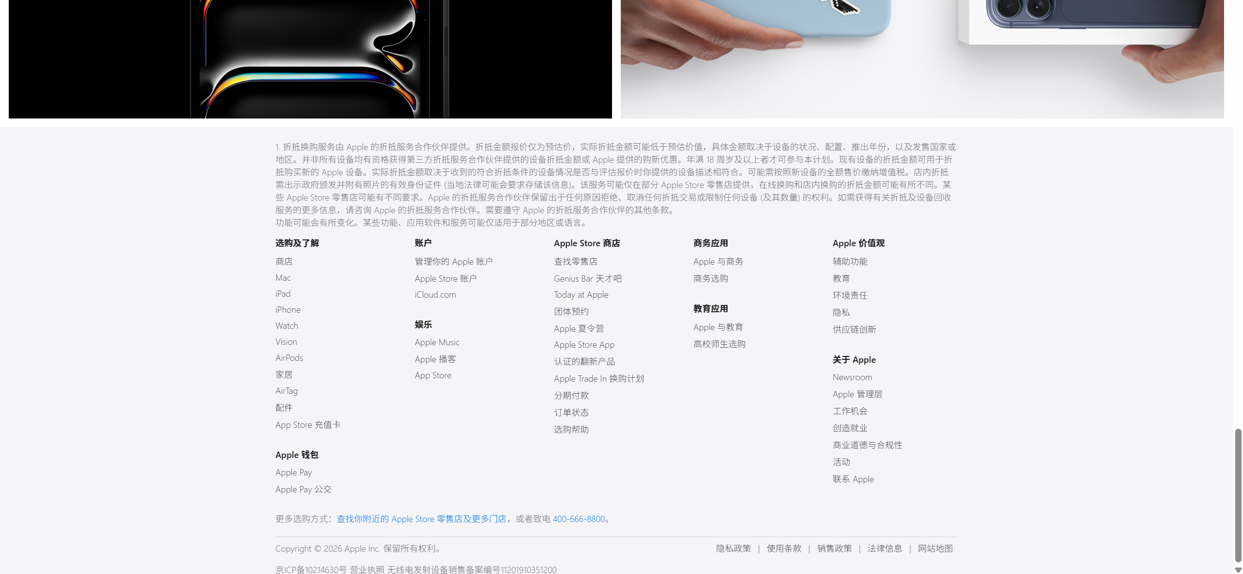 <p>1. 折抵换购服务由 Apple 的折抵服务合作伙伴提供。折抵金额报价仅为预估价,实际折抵金额可能低于预估价值,具体金额取决于设备的状况、配置、推出年份,以及发售国家或地区。并非所有设备均有资格获得第三方折抵服务合作伙伴提供的设备折抵金额或 Apple 提供的购新优惠。年满 18 周岁及以上者才可参与本计划。现有设备的折抵金额可用于折抵购买新的 Apple 设备。实际折抵金额取决于收到的符合折抵条件的设备情况是否与评估报价时你提供的设备描述相符合。可能需按照新设备的全额售价缴纳增值税。店内折抵需出示政府颁发并附有照片的有效身份证件 (当地法律可能会要求存储该信息)。该服务可能仅在部分 Apple Store 零售店提供,在线换购和店内换购的折抵金额可能有所不同。某些 Apple Store 零售店可能有不同要求。Apple 的折抵服务合作伙伴保留出于任何原因拒绝、取消任何折抵交易或限制任何设备 (及其数量) 的权利。如需获得有关折抵及设备回收服务的更多信息,请咨询 Apple 的折抵服务合作伙伴。需要遵守 Apple 的折抵服务合作伙伴的其他条款。</p>