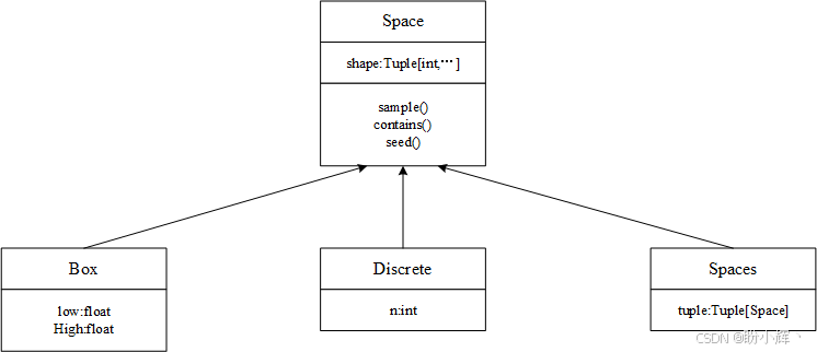 观测空间与动作空间在 Gymnasium 中采用相似的设计范式,具体类结构如下图所示: