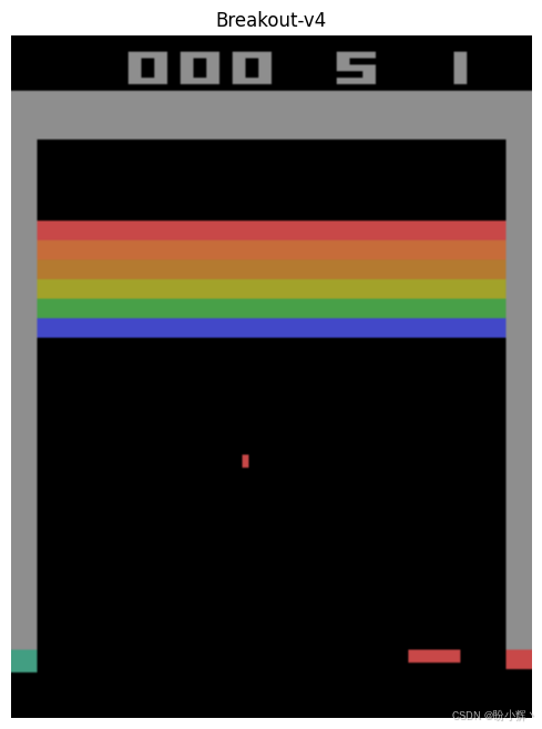 Breakout-v0,Breakout-v4:原始的Breakout游戏,球的位置和方向是随机的BreakoutDeterministic-v0,BreakoutDeterministic-v4:球的初始位置和速度向量固定BreakoutNoFrameskip-v0,BreakoutNoFrameskip-v4:智能体接收每一帧画面(默认情况下,每个动作会持续多帧)Breakout-ram-v0,Breakout-ram-v4:观测数据为完整的Atari仿真内存 (128字节),而非屏幕像素Breakout-ramDeterministic-v0,Breakout-ramDeterministic-v4:固定初始状态的内存观测版本Breakout-ramNoFrameskip-v0,Breakout-ramNoFrameskip-v4:智能体接收每一帧画面的内存观测版本