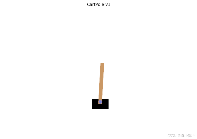 导入 gymnasium 包,并创建一个名为 CartPole 的环境。该环境属于经典控制类问题,其核心在于控制底部连接着杆子的移动小车(如下图所示)。难点在于这根杆子容易向左右倾斜,需要通过每一步移动平台来保持平衡。
