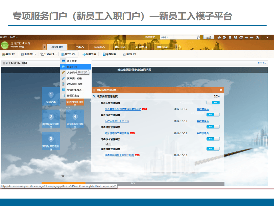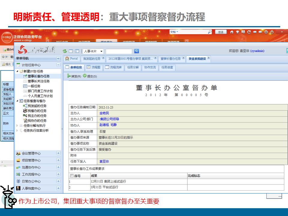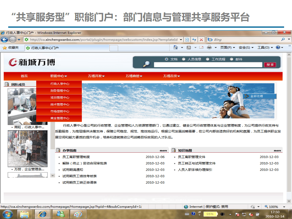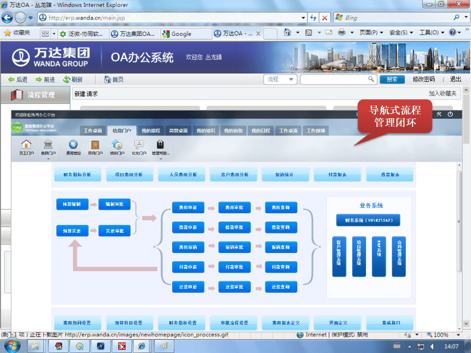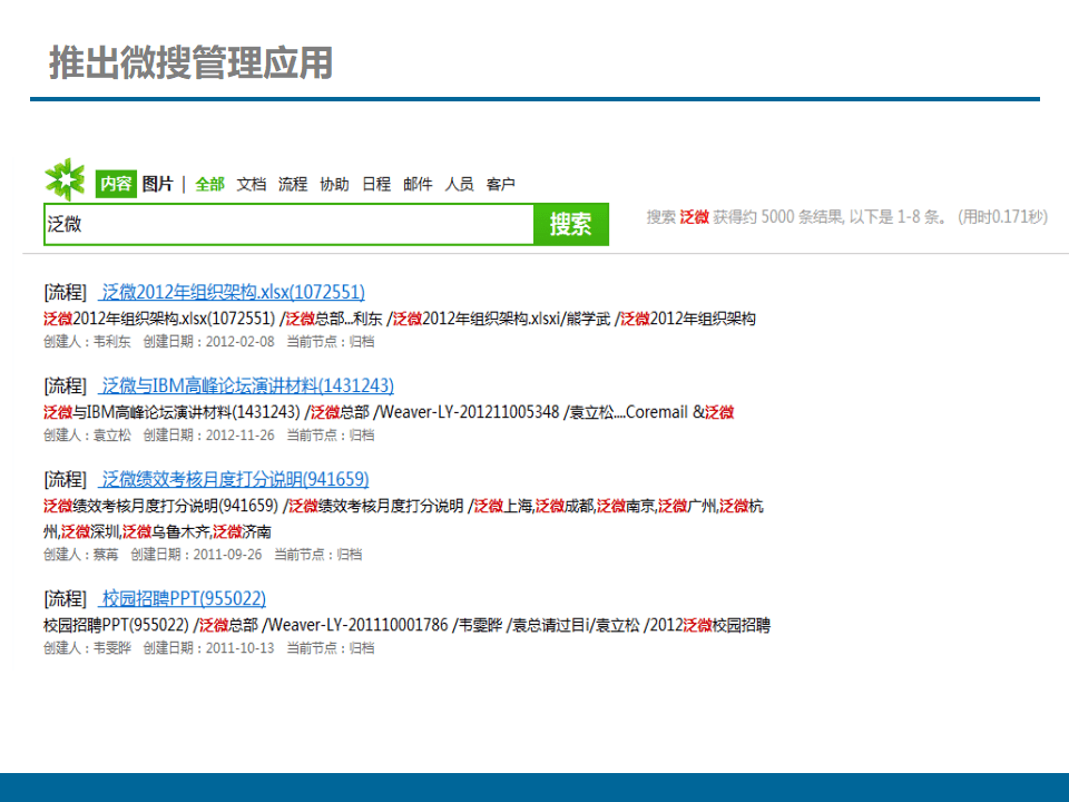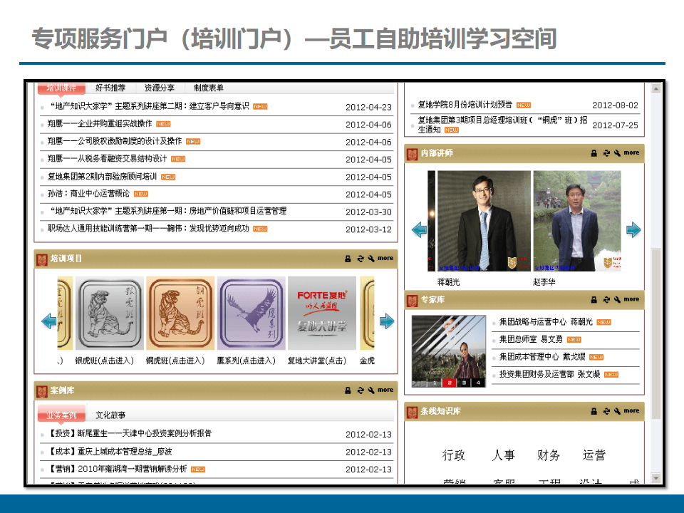 它的管理定位是:为集团决策层、管理层和全员提供资讯、知识、工作、管理、沟通、决策一体化平台。