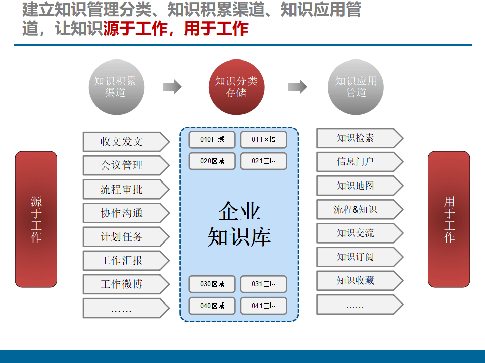 方案提出的知识管理体系,核心逻辑是:让知识源于工作,用于工作。