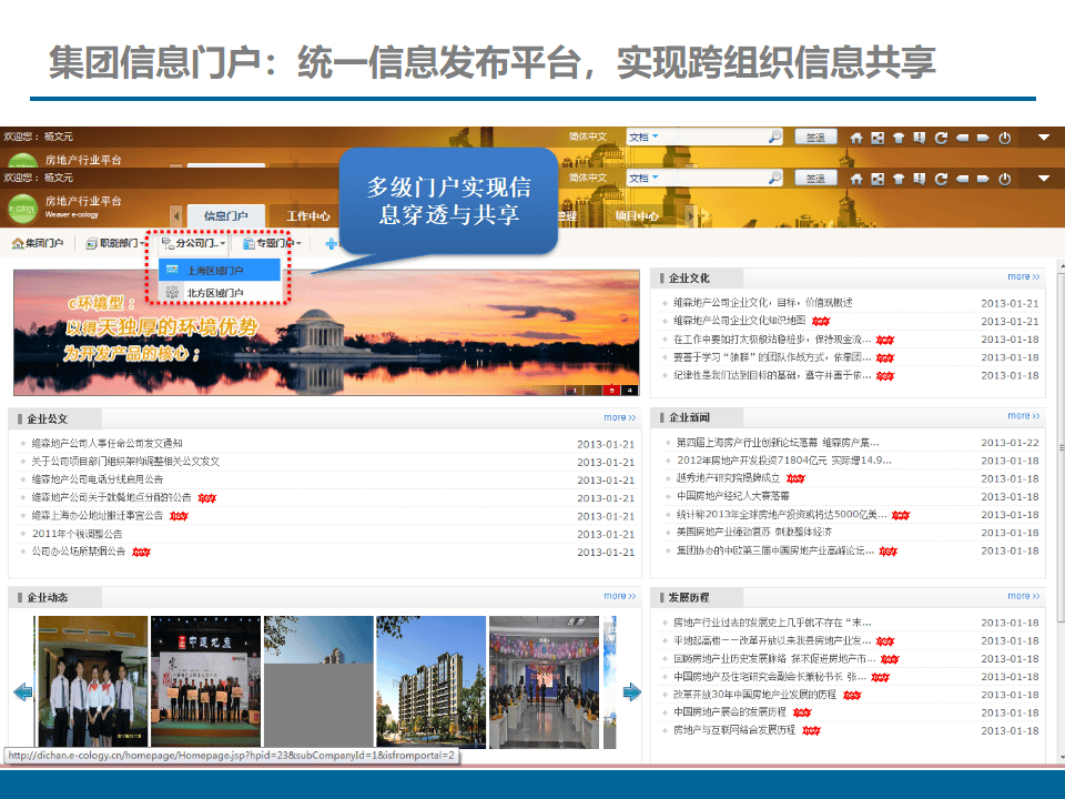 - 集团整合门户:集团总部统一发布的信息、公告、战略动态,是集团意志的数字化呈现