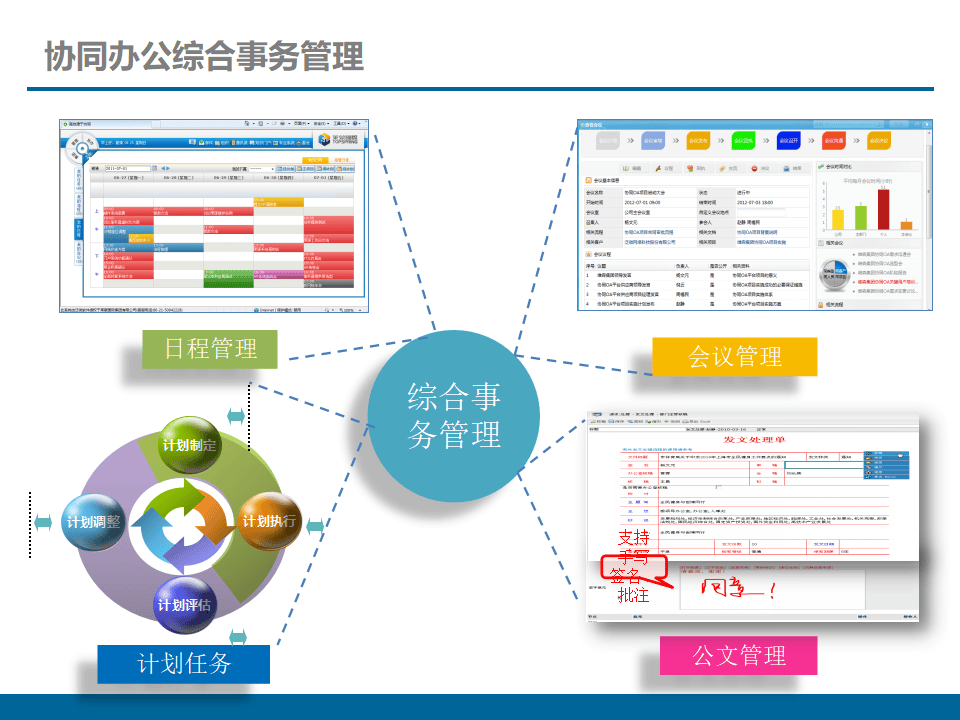 - 协同办公管理应用:流程审批、计划任务、会议管理、日程管理、公文管理、办公资产