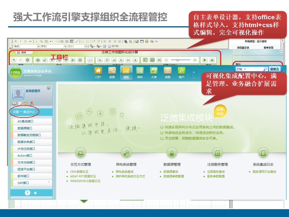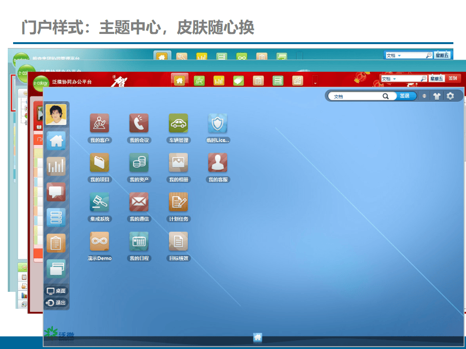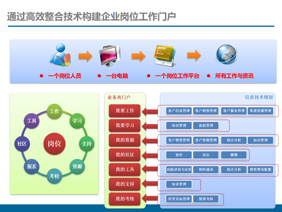 - 岗位工作门户:以岗位角色为核心,为每个人定制其工作所需的所有工具和信息