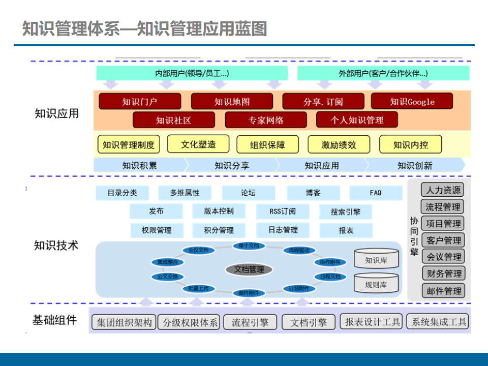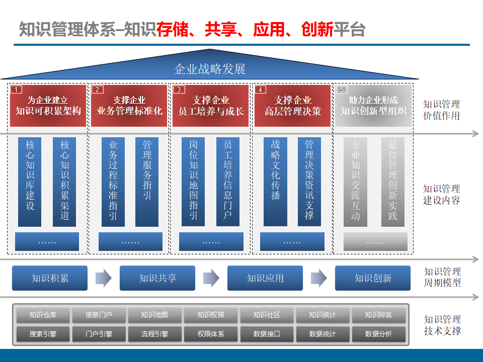 第四层:高层决策支持------战略文化传播、行业资讯汇聚、管理决策参考资料的系统化整理,为高层提供决策知识支撑。