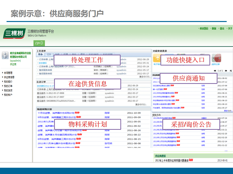 - 协同商务门户:面向供应商、经销商、合作伙伴等外部角色开放的服务入口