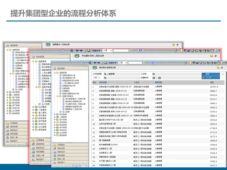 - 流程分析体系:对流程运行数据进行统计分析,识别瓶颈环节,支持持续优化