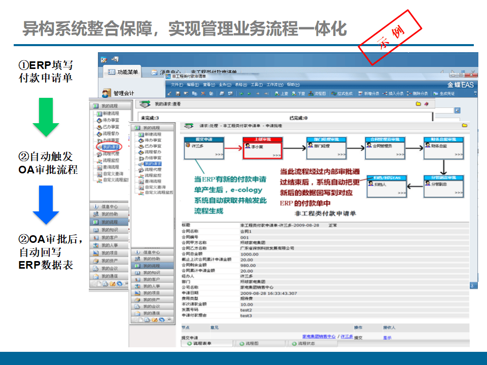 - 主数据管理集成:物料主数据、供应商主数据、客户主数据通过OA统一申请和审批,确保主数据的准确性和一致性