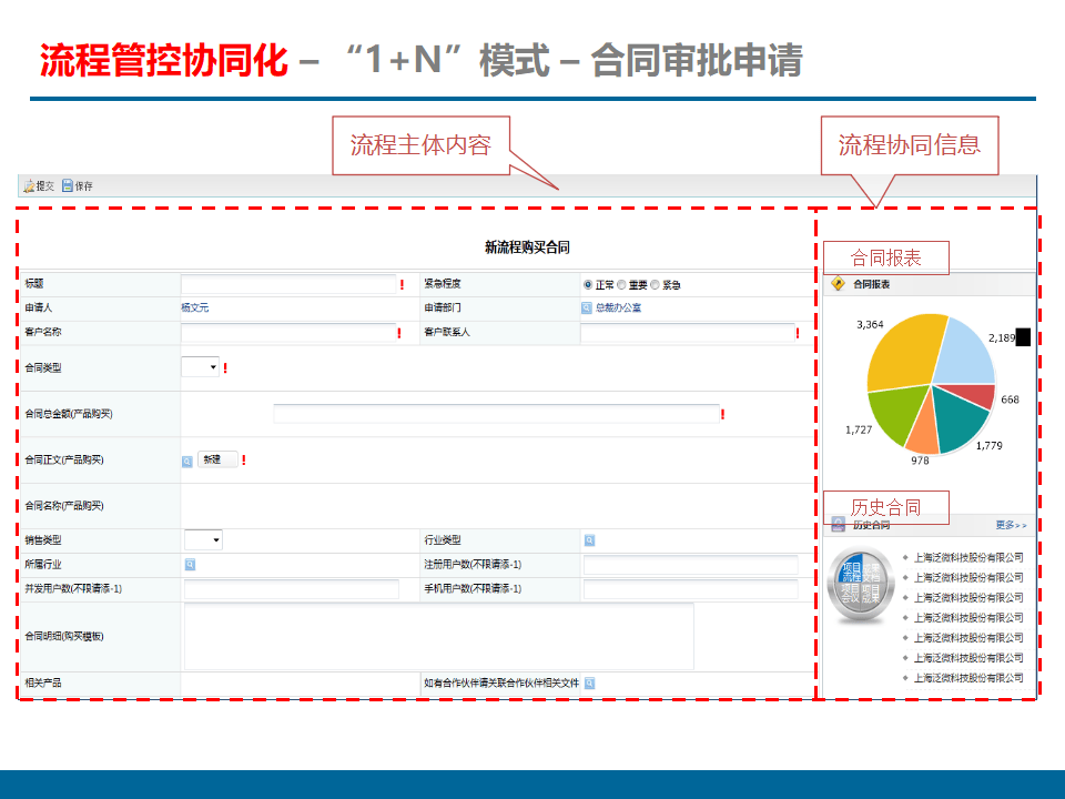 方案中提出的**"1+N"流程协同化**模式,本质上就是解决这个问题:在一个流程的审批界面,同步推送与该流程相关的所有协同信息------历史合同、预算执行情况、供应商评价、关联付款记录等。审批人在一个页面内,就能看到做出正确决策所需要的全部信息。