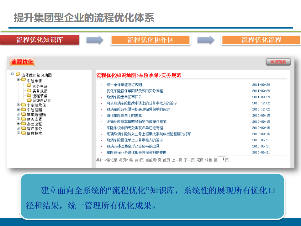 第二层:业务管理标准化------通过业务过程标准指引和知识地图,把最佳实践变成可复用的标准操作流程,推动业务执行标准化。
