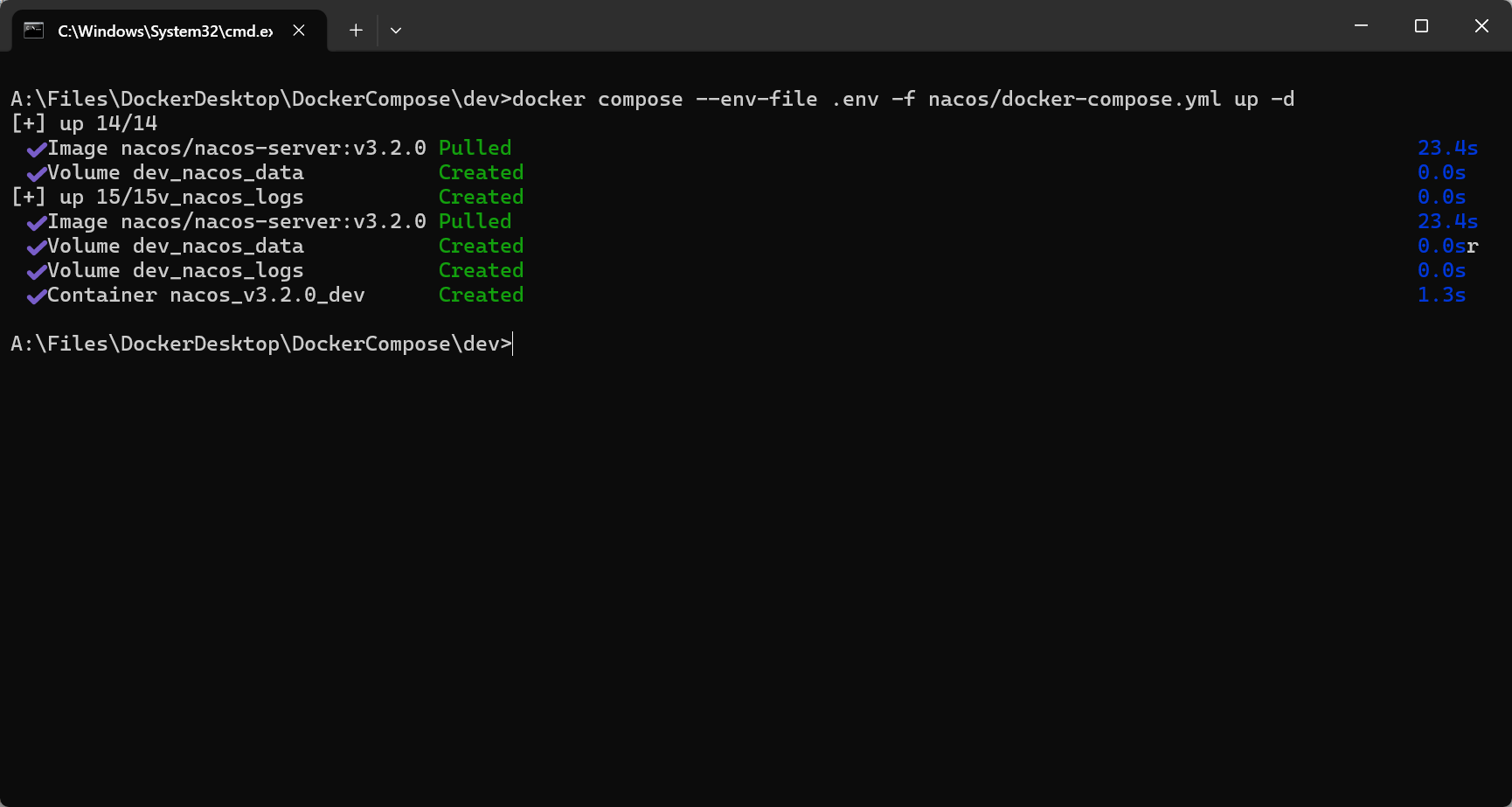 docker compose --env-file .env -f nacos/docker-compose.yml up -d