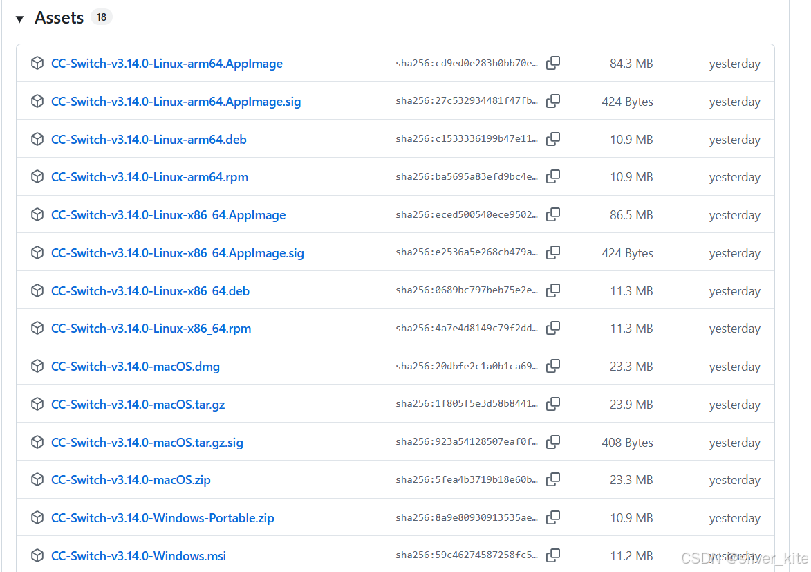 根据自己电脑选择安装包,这里我选择的是CC-Switch-3.14.0-Windows.msi进行安装,然后双击安装包,选择合适位置进行安装即可。