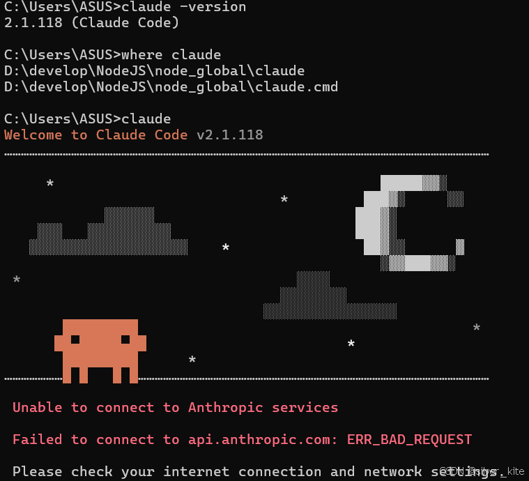 此时使用会无法连接Anthropic,需要科学,并且官方对地区封号力度大,本篇配置国内模型。
