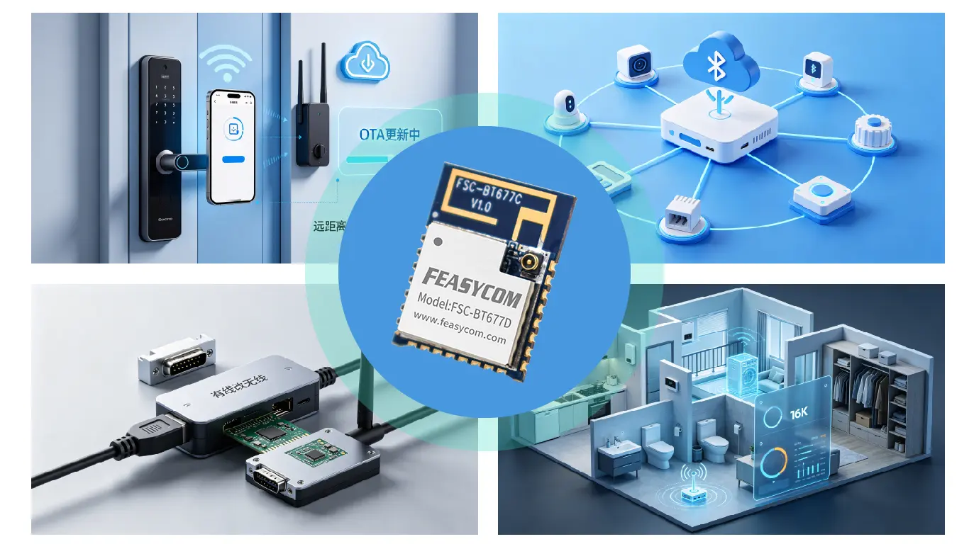 智能家居正在从"单品联网"走向"场景协同":用户希望门锁、传感器、面板、网关之间响应迅速、配网便捷、待机功耗低、并支持后期升级。要实现这些体验,除了云端和 App,设备侧的无线模组往往起到决定性作用------尤其在金属门体、墙体遮挡、多设备共存的住宅环境中,兼容性、灵敏度、吞吐量与集成效率缺一不可。