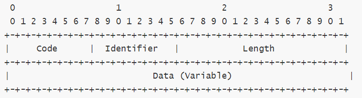 | Length | 2 | 总长度。包含Code、ID、Length和Data的总字节数。 |