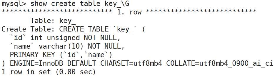 key中的pri表示该字段是主键