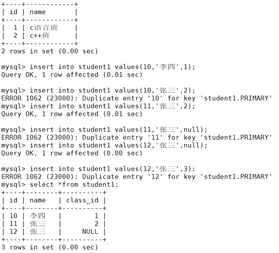 foregin key(class_id) references class(id),否则只有关联,没有约束