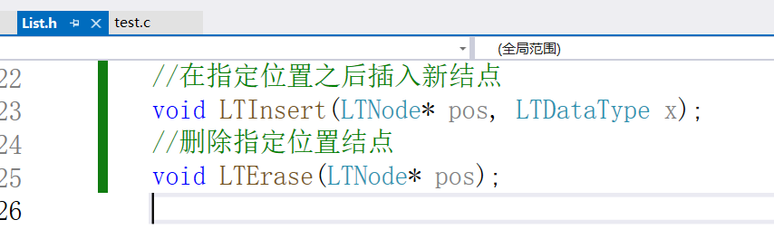 最后是我们的'体验官'------test.h测试文件。它是程序的入口,也就是main函数所在的地方。我们会在这里演示如何使用前面定义好的所有功能,来验证我们的链表是否工作正常。