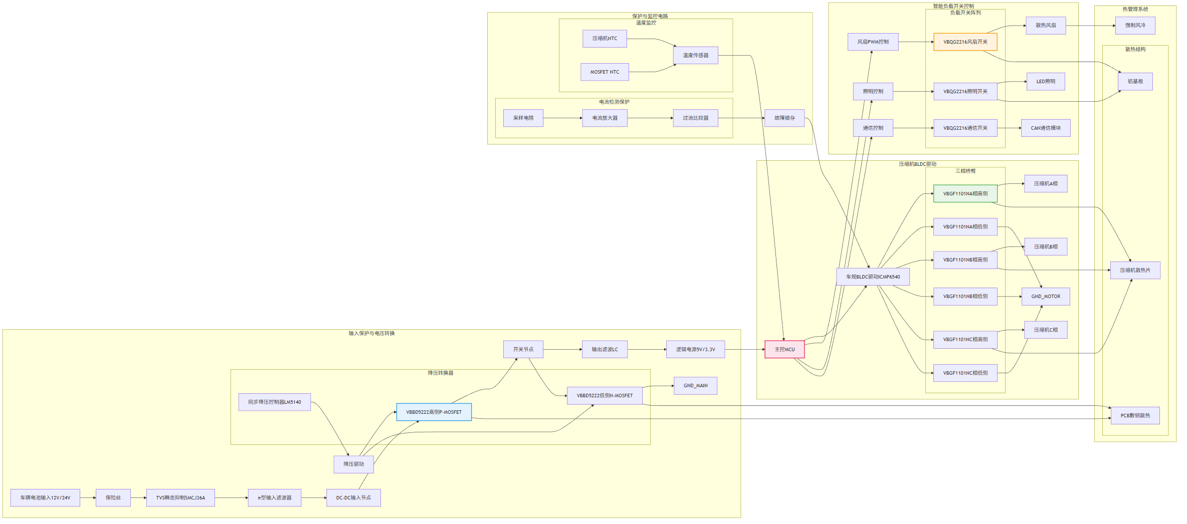 图2: 车载冰箱方案功率器件型号推荐VBGF1101N与VBBD5222与VBQG2216与VBP16R90S与产品应用拓扑图_02_compressor