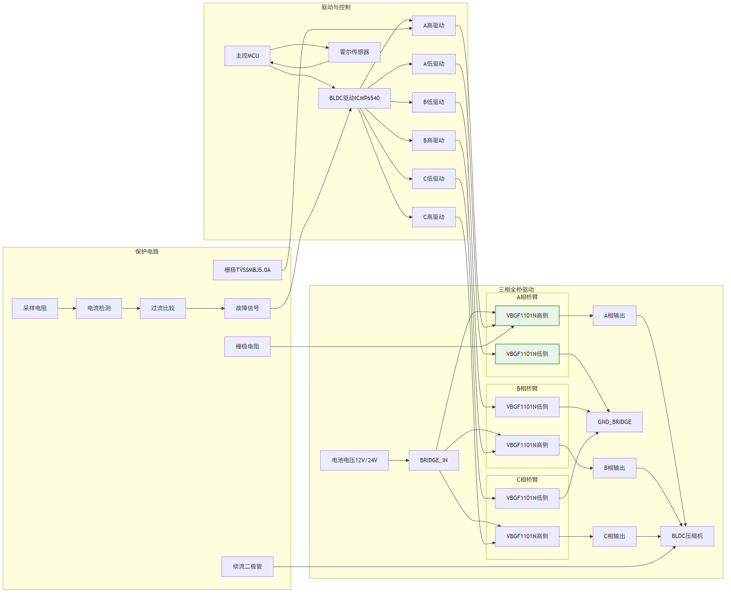 过流保护:压缩机驱动回路需设置精密采样电阻与比较器电路,或选用带过流保护的驱动IC。
