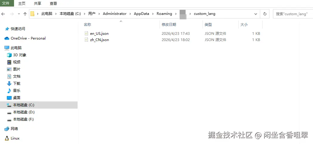 // 用户自定义语言包:存放在系统用户数据目录下(跨版本不会丢失)