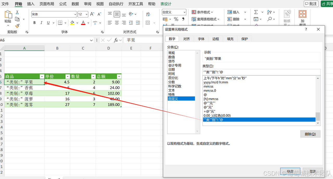 "类别:"@或"含义:"@ - 效果: 如果你在单元格输入文本"苹果",设置格式后,单元格会显示为"类别:苹果"或"含义:苹果"。