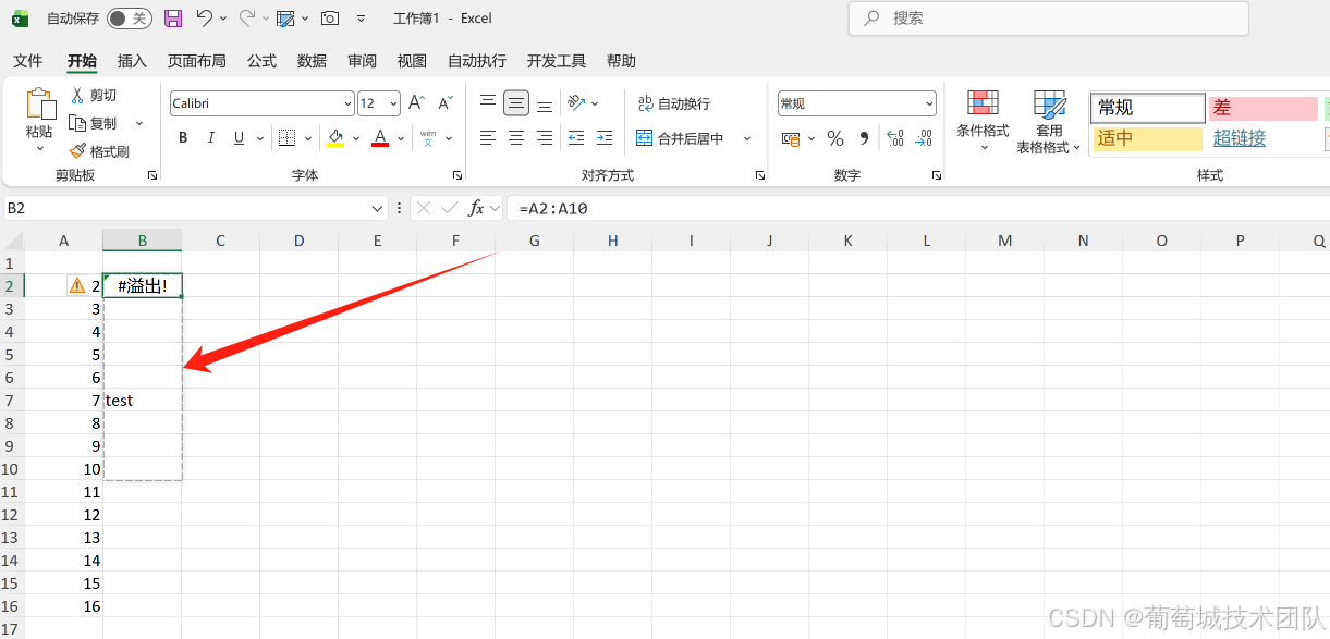 =A1:A10且没有加@时,Excel 试图将 10 个结果填入 B1:B10。 - 报错 :如果 B1:B10 这个范围内有任何一个单元格被其他数据(比如一个空格或文字)占用了,Excel 就没法"溢出",从而报错