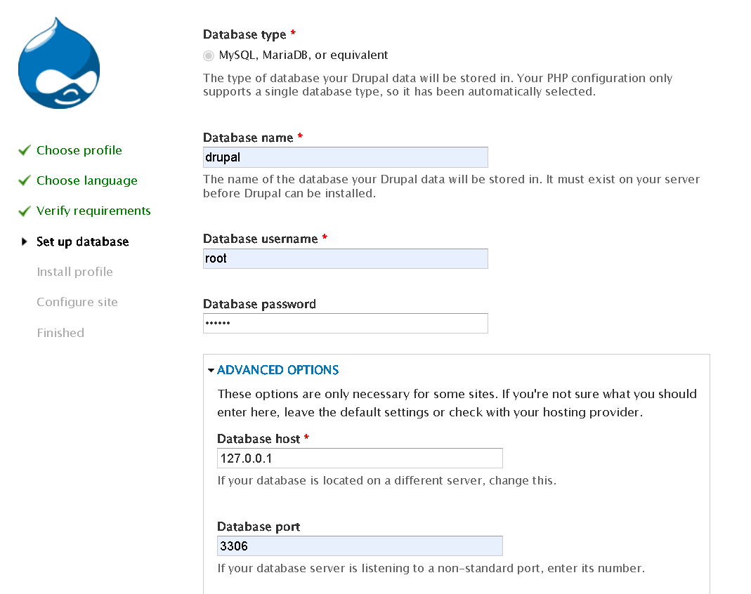 数据库名(Database name):drupal