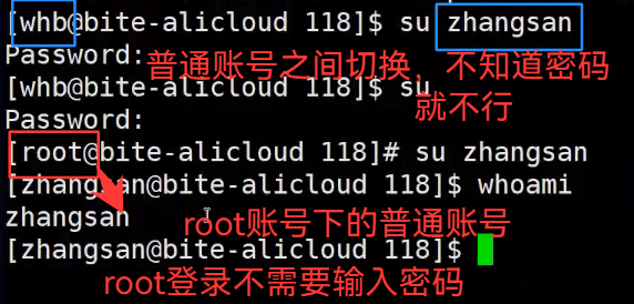 su : 切换用户,需要输入对应用户的密码,密码不回显